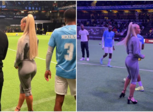 Međutim, jasno je da je malo kome bilo do fudbala kada je pored aut linije bila atraktivna fudbalera koja je u uskoj odevnoj kombinaciji mamila uzdahe.